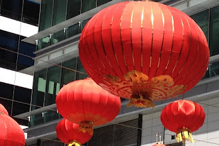 Following up leads for my current city research, today I stumbed into Chinatown, not only on Valentine's Day, but also during the opening salvos of Chinese New Year.